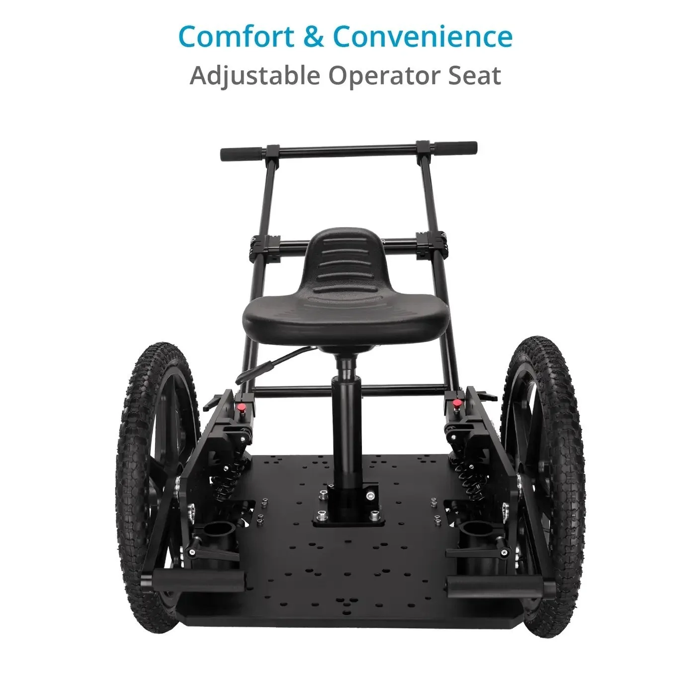 8.6” Dual Pneumatic Jockey Wheels : Two swiveling wheels to create a smooth path for stable performance and move in any direction - straight, left/right, or circular